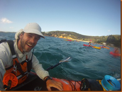 After a couple hours into the crossing my legs are getting restless and I’m already being distracted by thoughts of getting onto land and stretching my legs. Of course the fact this isn’t a possibility just makes matters worse…. I’m sure there is a life lesson here somewhere, which I’m sure I’ll have time to explore during tomorrows paddle. Anyway, we complete the crossing and head towards Mangawhai Heads. Our goal almost achieved, a couple of final hurdles were presented….. big surf waves, which we successfully negotiated….. yeah!.... and the dreaded falling tidal current. Of course the place we are now staying at, is at the end of the inlet! We dig deep and expend the last of our energy reserves and reach our goal at 4:15p.m.….. 32.6 knm.